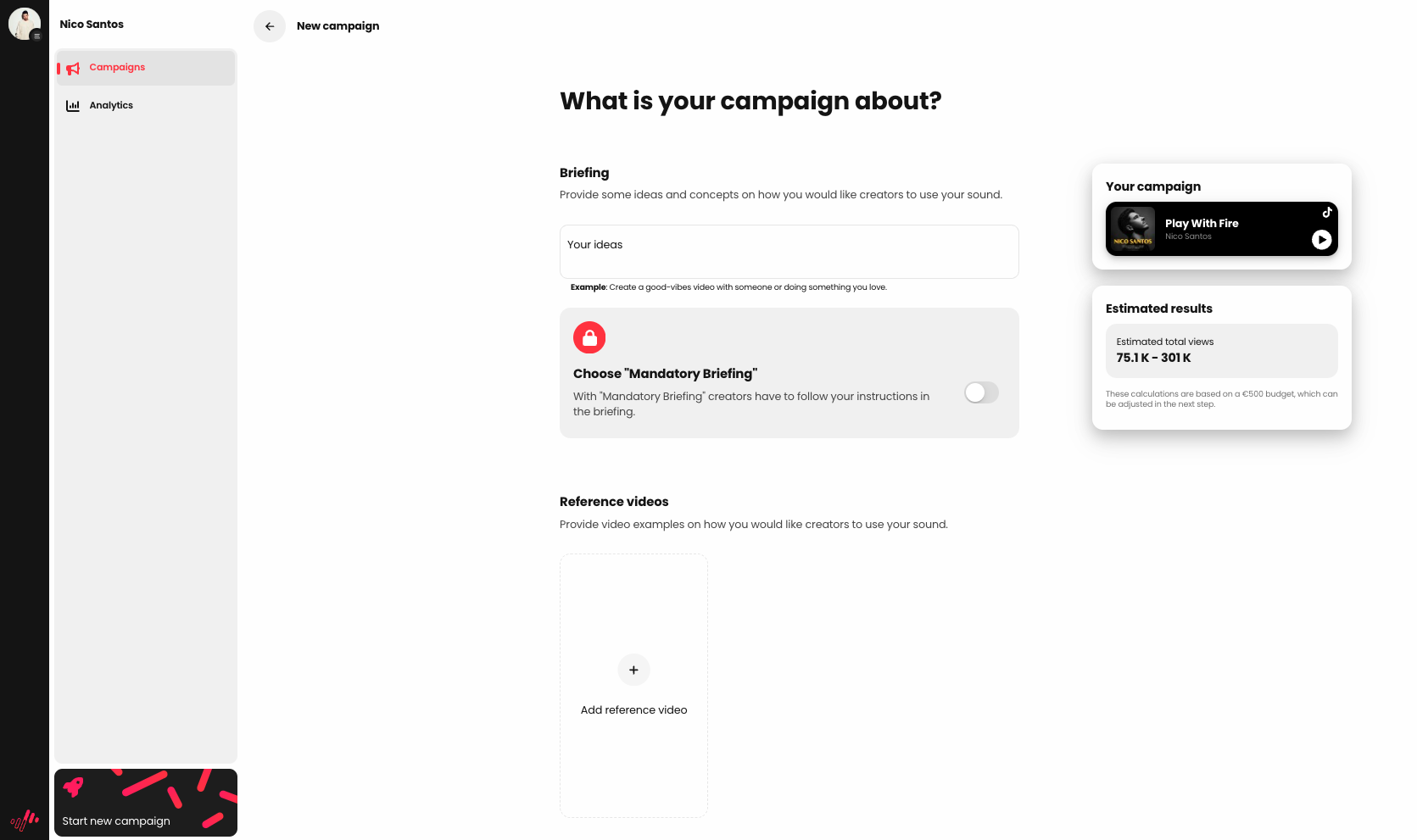 When setting up a SongPush campaign, it is possible to add both a briefing and reference videos.